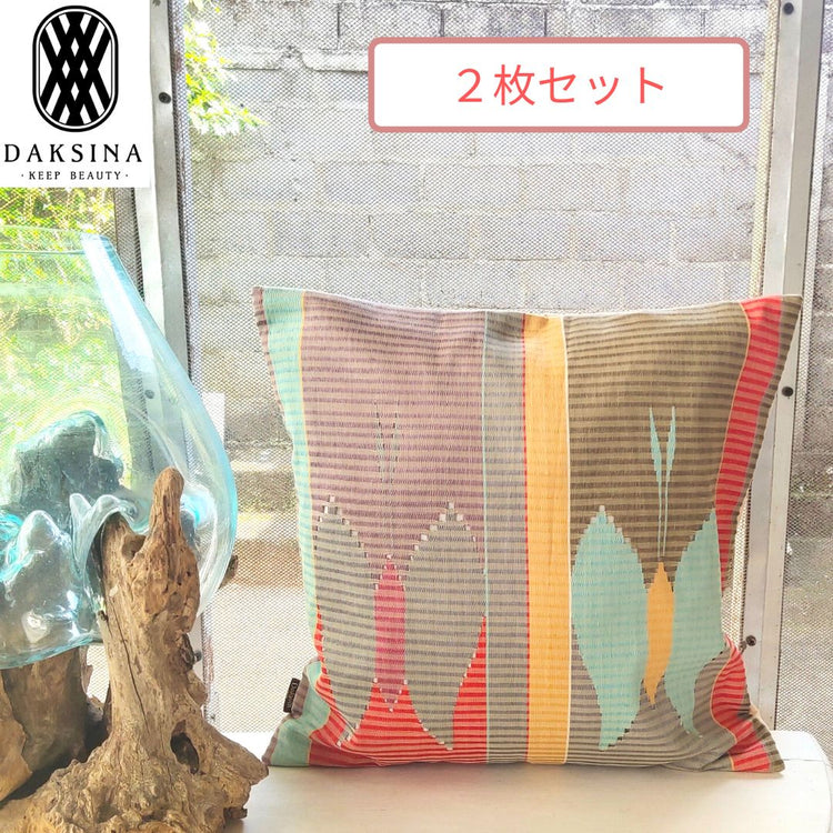 草木染め・手織りの伝統織物ランランを使ったクッションカバー2枚組です