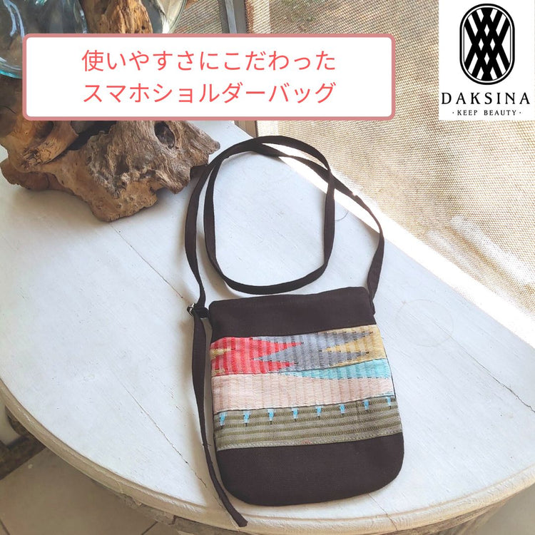 《草木染・手織り》伝統織物ランラン スマホショルダーバッグ